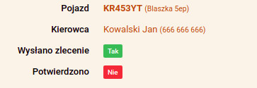Po przejściu do szczegółów zlecenia transportowego, z którym powiązane jest dane zlecenie spedycyjne, na dole ekranu w podsumowaniu zlecenia spedycyjnego jest widoczna sekcja, w której widzimy, czy zlecenie zostało wysłane oraz czy zostało potwierdzone przez przewoźnika.